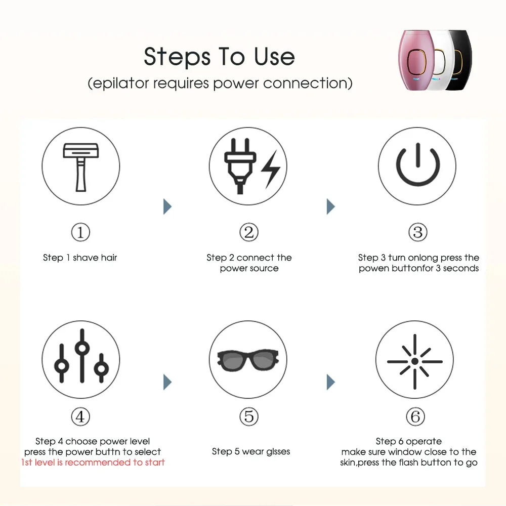 ● The device will automatically adjust the settings to match the root length, thickness and texture characteristics of whatever body part you are targeting. The device repeatedly sends gentle pulses of light to the hair shaft, causing a buildup of heat and energy.