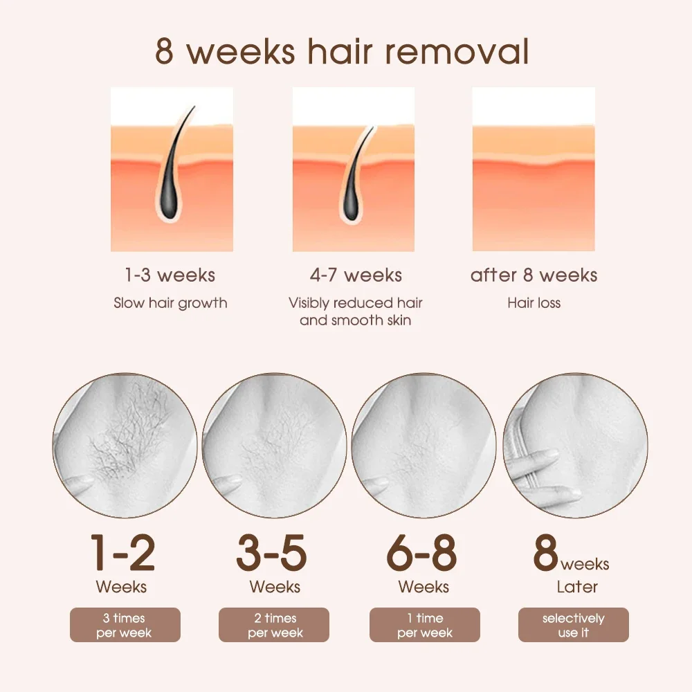 ● In 1-3 weeks, the hair starts to grow slowly. 4-7 weeks hair becomes thinner and thinner. After 8 weeks, I took off my whole body, said goodbye to embarrassment, my hair was reduced by 75% in 4 weeks, and I had silky girly muscles in 8 weeks.