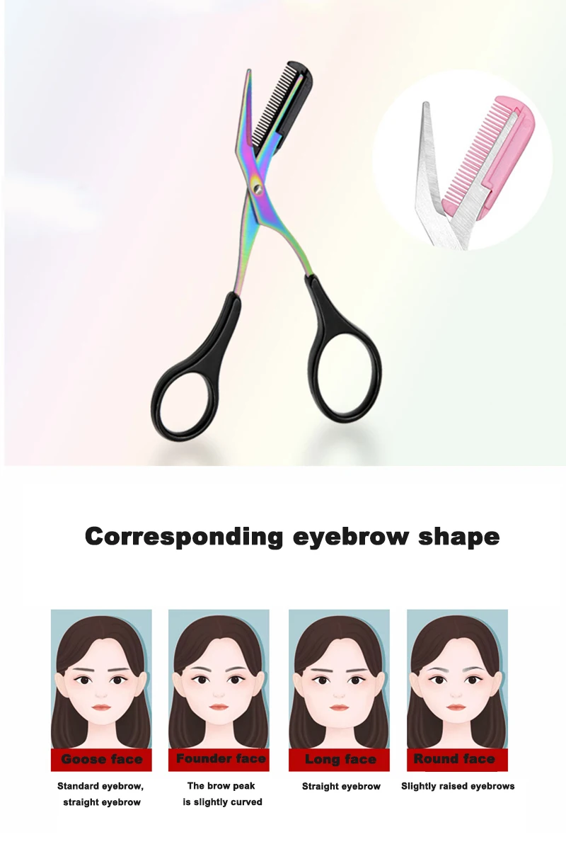 Eyebrow Trimmer Scissor with Comb Facial Eyelash Hair Removal Grooming Shaping Eyebrow Shaver Cosmetic Makeup Accessories Eyebr
