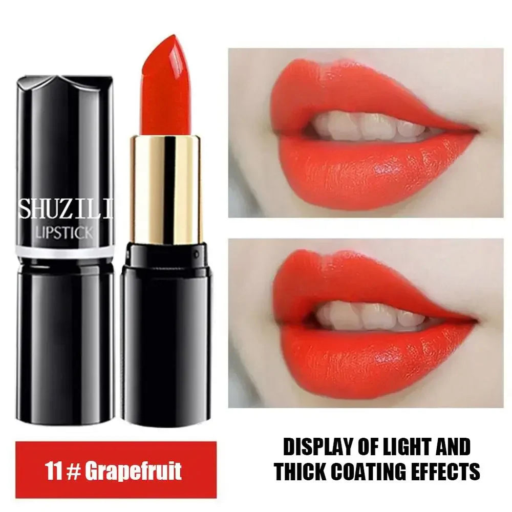 Introducing our Long-Lasting Matte Lipstick – the ultimate addition to your makeup collection! Designed for everyone, this lipstick is perfect for all skin types and comes in an array of stunning shades to suit any occasion. Choose from 12 vibrant colors, including 01 # Rose, 02 # Bright Orange, 03 # Aunt, 04 # Rose Red, 05 # Eating Earth, 06 # Hot Kiss Red, 07 # Classic Red, 08 # Bean Paste, 09 # Rose Red, 10 # Pink, 11 # Grapefruit, and 12 # Coral Red, allowing you to create endless makeup styles that reflect your unique personality.