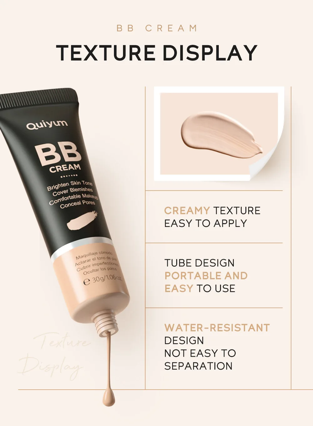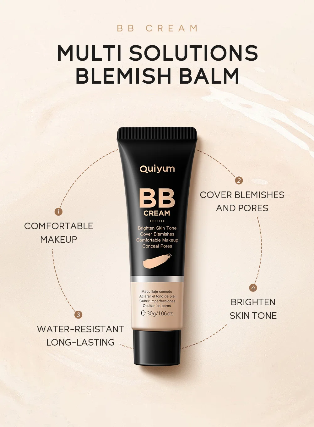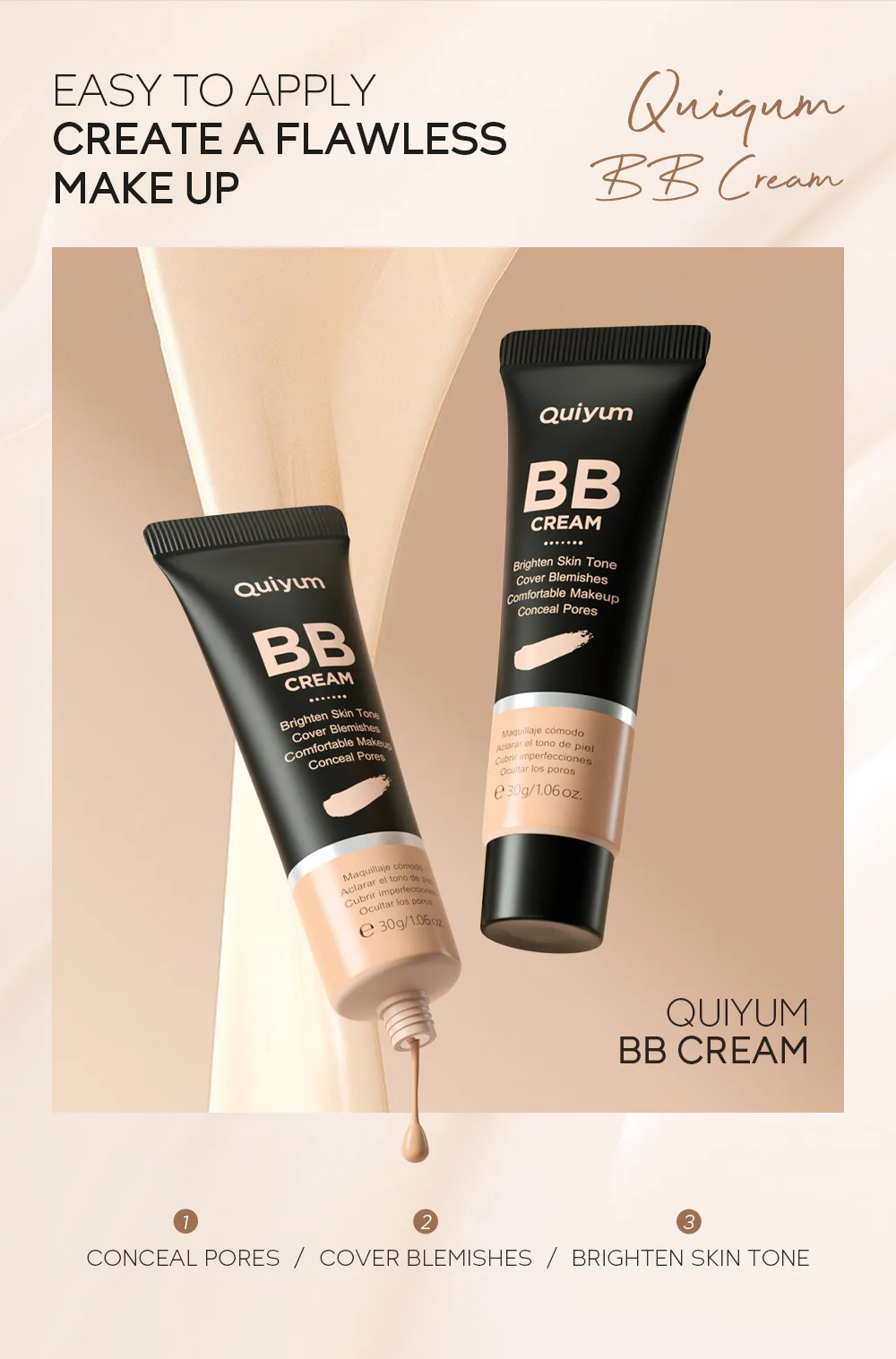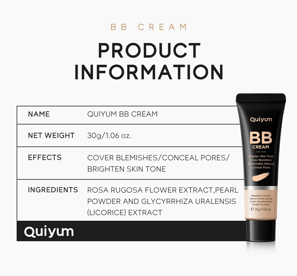 Introducing the Ultimate High Coverage BB Cream by QUIYUM – your new go-to for flawless, radiant skin! This incredible 30g (1.06 oz) cream is not just a foundation; it’s a multi-functional makeup essential that combines the benefits of a waterproof foundation and a concealer to give you a perfect complexion all day long.