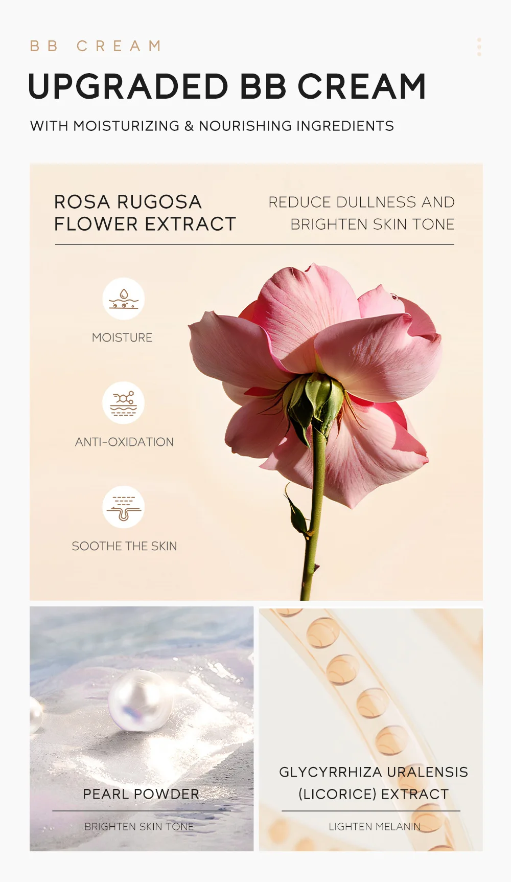- **Radiant Glow:** Infused with Rosa Rugosa Flower Extract, Pearl Powder, and Glycyrrhiza Uralensis (Licorice) Extract, it nourishes your skin while providing a luminous glow.